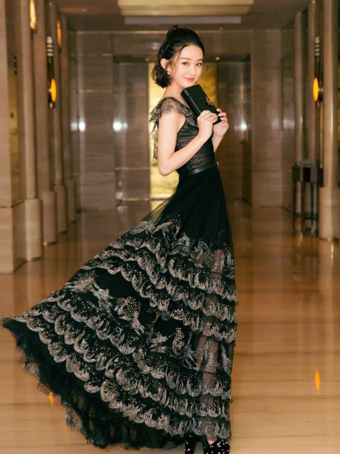 墨羽翩跹:赵丽颖一袭黑天鹅礼服的璀璨之夜